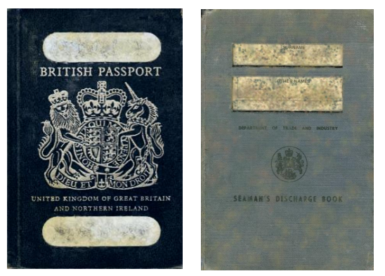 Example of British Passport and Merchant Navy Discharge Book